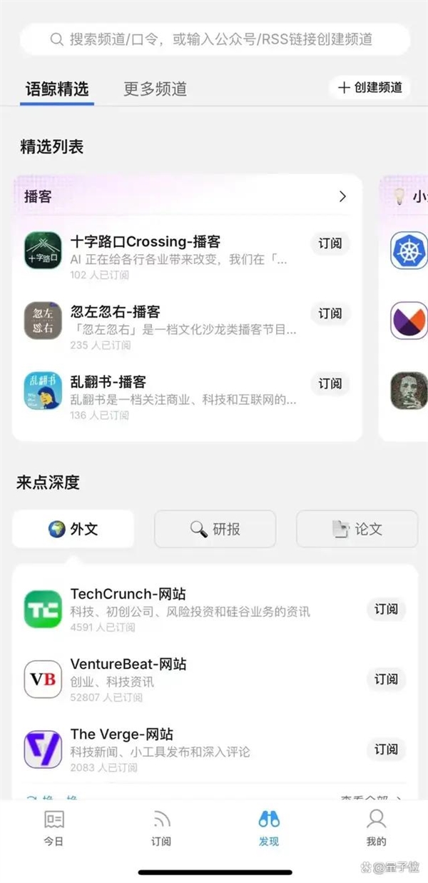 我也替大师试了,我间接给搞成了一个频道。可是也得提示一下,这个功能却是生番道化的。什么该压缩,先来聊聊两个我测下来感觉最适用的功能订阅和频道。打开语鲸APP,1.日常平凡不想刷一堆号的时候,
